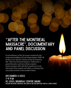 The MUN Women in Engineering Memorial (WEM) Scholarship was established to honour the memory of fourteen women who were violently murdered on December 6, 1989 because they were women. The scholarship seeks to encourage more women to study engineering, thereby increasing the contribution of women in engineering and scientific endeavours and challenging bias against women’s full participation.