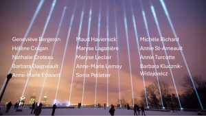 ![]() Beams of light on Mount Royal mark the anniversary of the December 6 Polytechnique massacre. (Ryan Remiorz/The Canadian Press) |